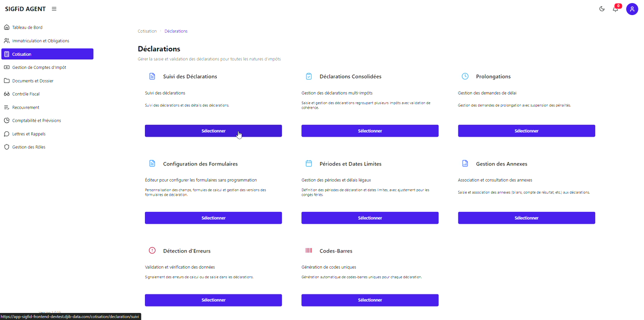 2. Accéder au menu Déclarations