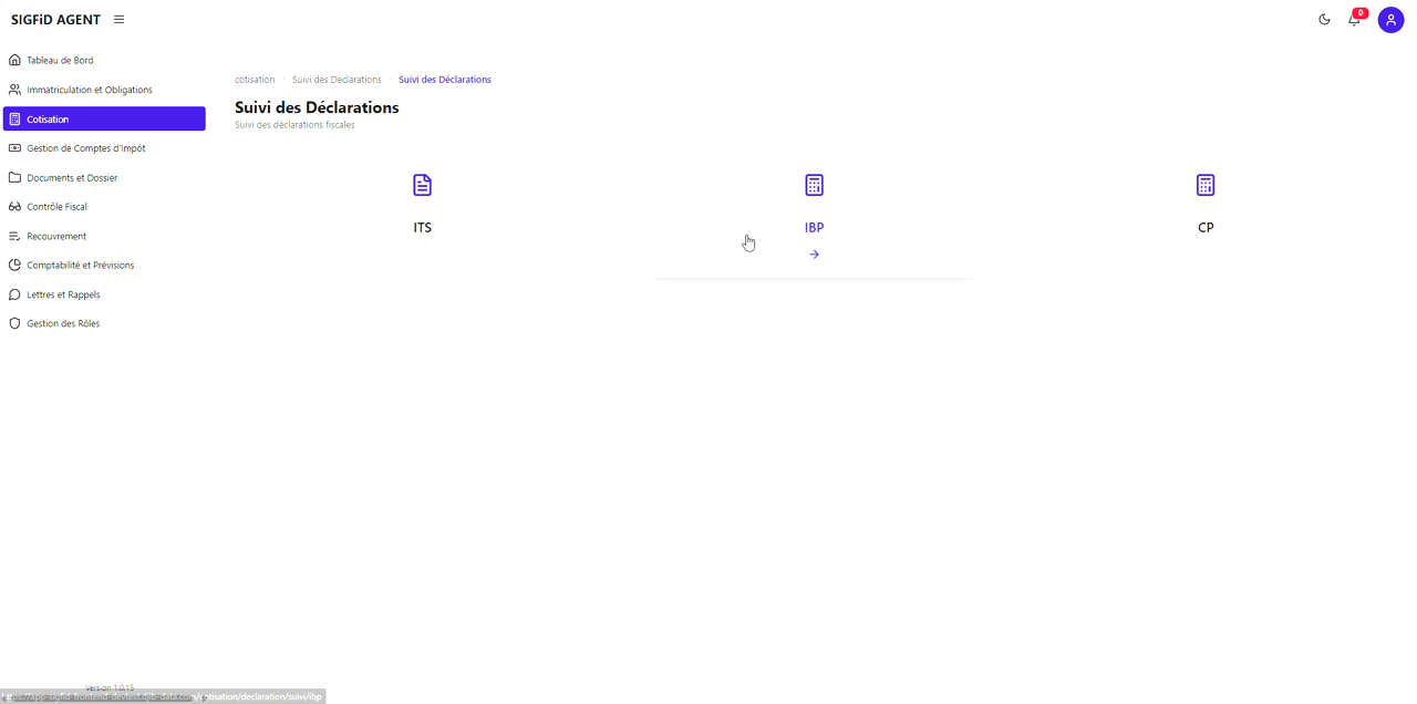 Vous êtes maintenant sur Suivi des déclarations IBP.