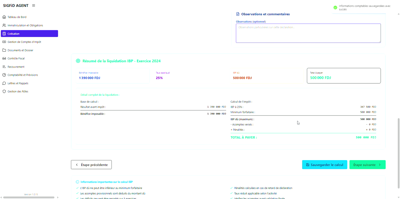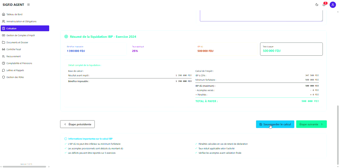 4. Sélectionner la nature d’impôt IBP